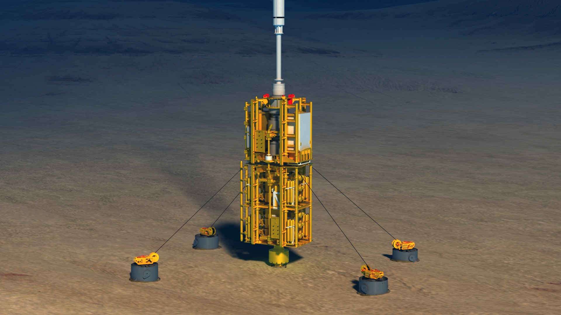 About the Wellhead Fatigue Mitigation System:Two emerging technical challenges facing the drilling industry today are well fatigue and wellhead strength. BOPs are increasing in size and weight, and drilling times are getting longer, causing wellhead fatigue issues to emerge as an industry challenge. New well designs must ensure that a high value well is engineered sufficiently to tolerate excessive fatigue caused by the newer and larger BOPs in use today. Legacy wells were mainly drilled with smaller BOPs and with a conductor design that was less robust. When attempting to interface with newer generation BOPs this exacerbates an already tenuous condition. In both cases, there are times when a wellhead fatigue mitigation device can provide substantial risk reduction. The tethered BOP Wellhead Fatigue Mitigation System alleviates these effects by arresting the motion of the BOP stack above the wellhead, thereby substantially reducing wellhead cyclic stresses and enhancing fatigue life. Depending on the specific riser and wellhead configuration, the increased fatigue life is often seen to indicate, through analysis, an improvement of 25 to 1000 times the original unmitigated wellhead fatigue. No mitigations to the wellhead or casing string need to be performed. All modifications are performed to the BOP outer frame on deck. An added benefit to the Wellhead Fatigue Mitigation System is the increased limits to the wellhead watch circle this system permits. Bending of the wellhead from lateral offset of the MODU due to drive off/drift off loads are reduced by factors of 3 to 4, enabling safer operations and decreasing position criticality. In shallow water, where watch circles can be very restrictive and approaching the Dynamic Positioning station keeping limits, this allows for a larger watch circle and decreased reliance on the DP’s station keeping performance. |